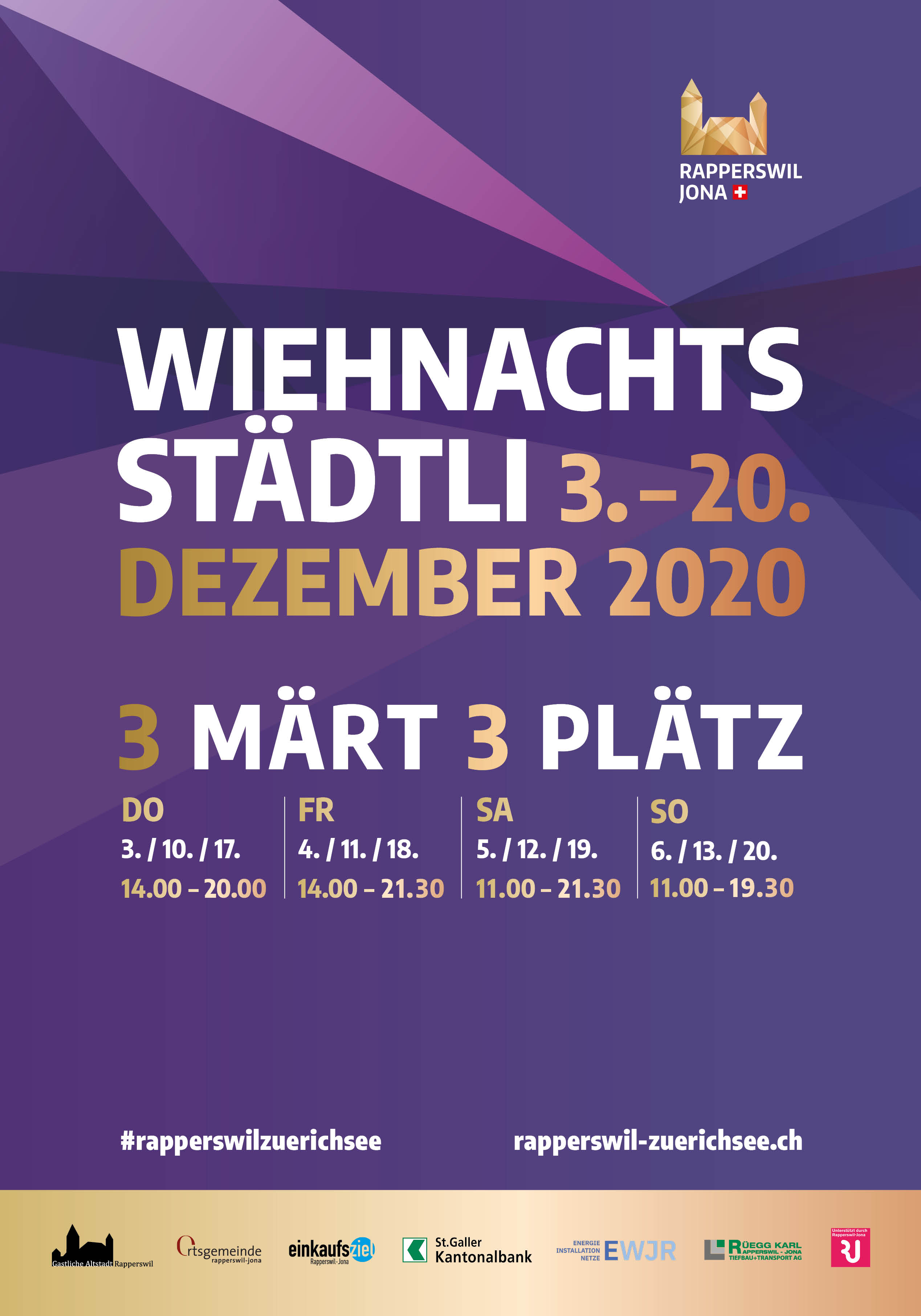 Um doch noch etwas Vorweihnachtsstimmung in die Stadt zu bringen, organisiert Rapperswil Zürichsee Tourismus ein WiehnachtsStädtli mit einigen Ausstellern. Geplant ist eine kleine, feine Auswahl an Marktanbietern mit stilvollem Angebot rund um das Thema Weihnachten.